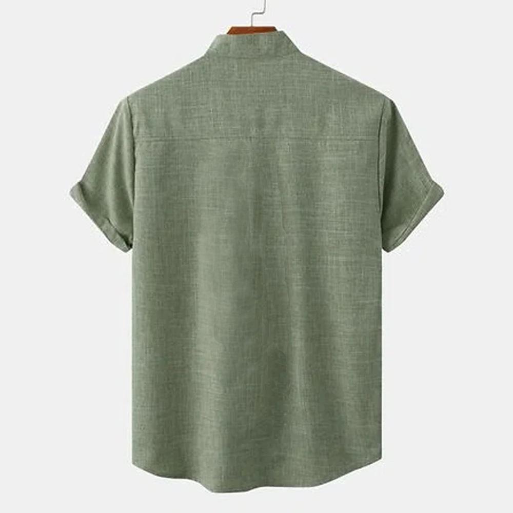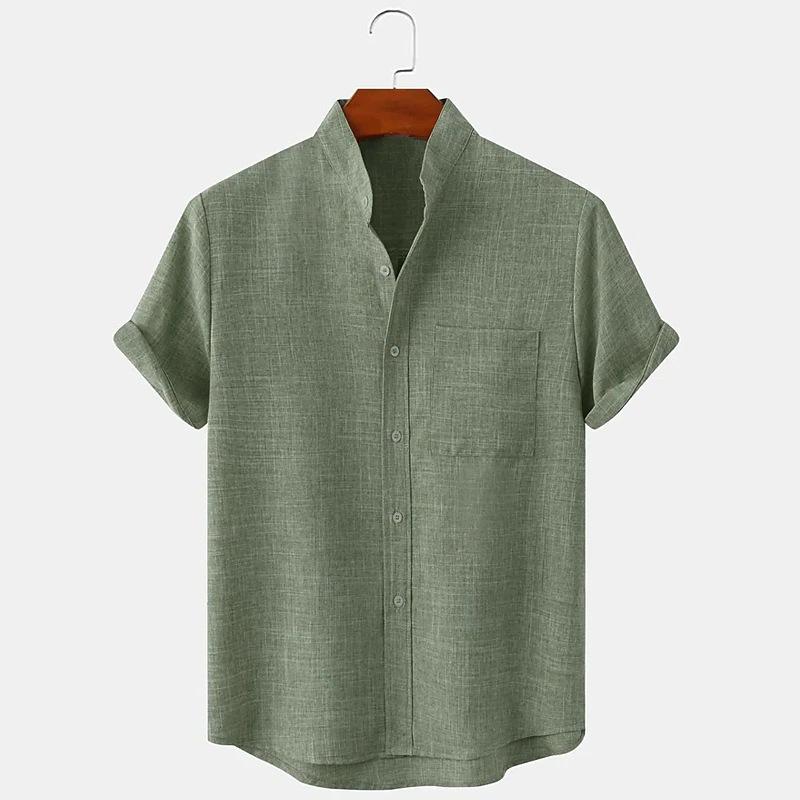 Мужские модные льняные рубашки с коротким рукавом, повседневные свободные рубашки большого размера