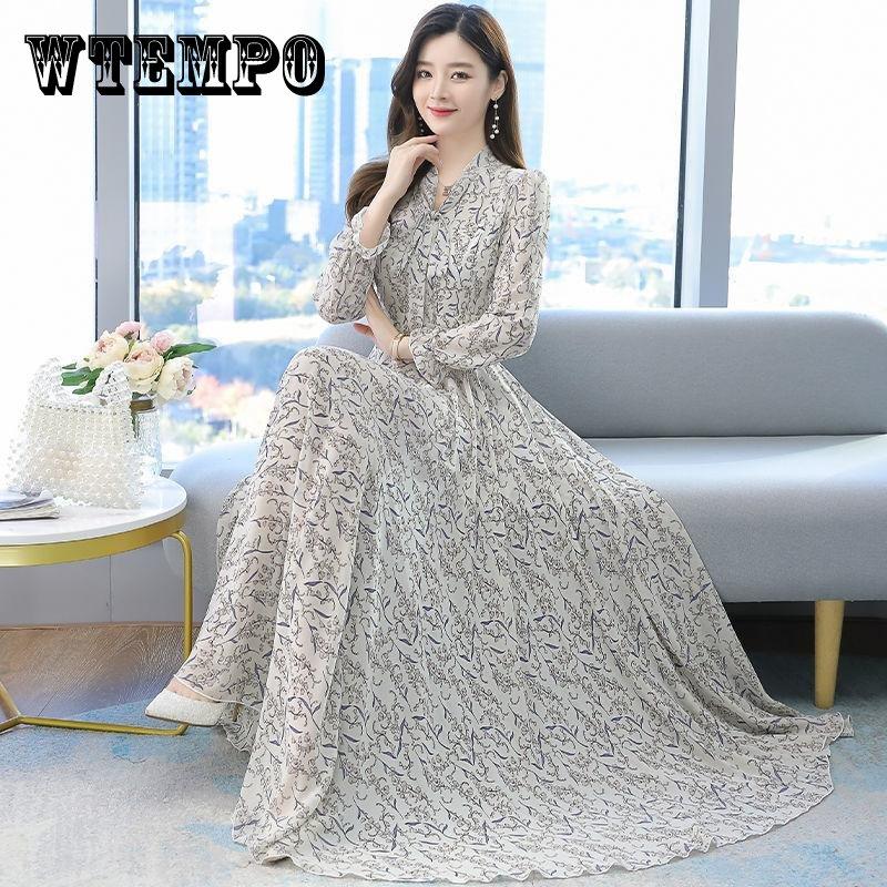 Шифоновое платье с длинными рукавами, весеннее и осеннее шифоновое платье с супер сказочной талией, пляжное платье с длинной юбкой, легкая дышащая ткань — купить товар онлайн с бесплатной доставкой по всему миру!