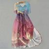 Женская мода повседневное платье с воротником с лацканами и короткими рукавами с принтом и ремнями