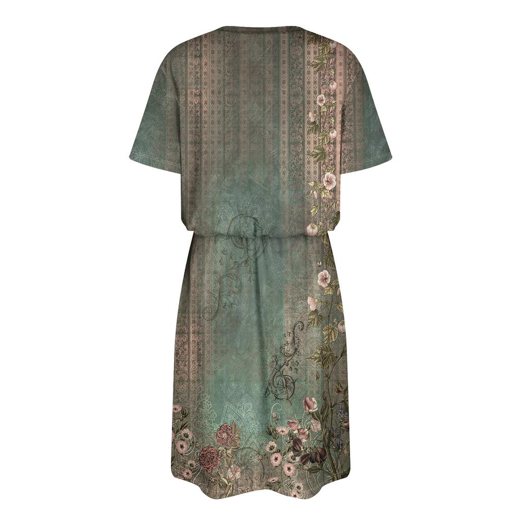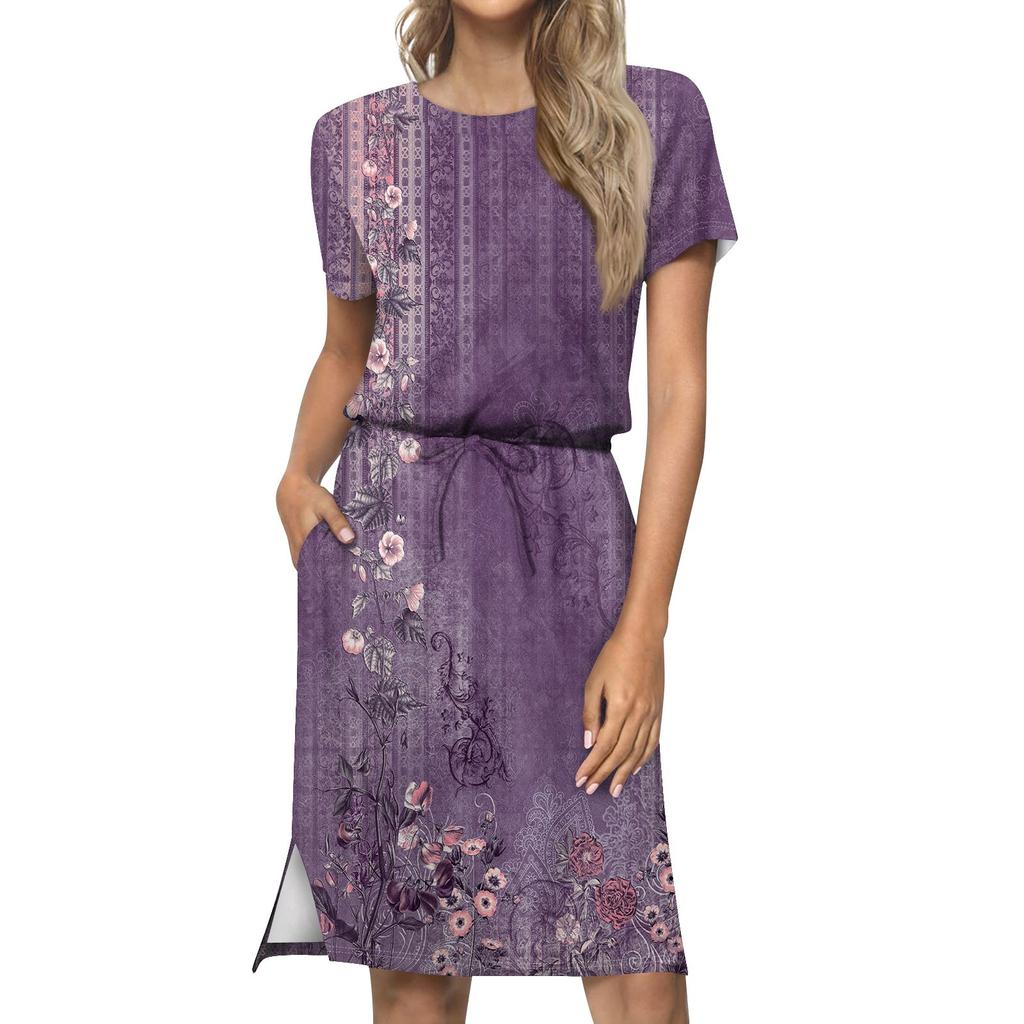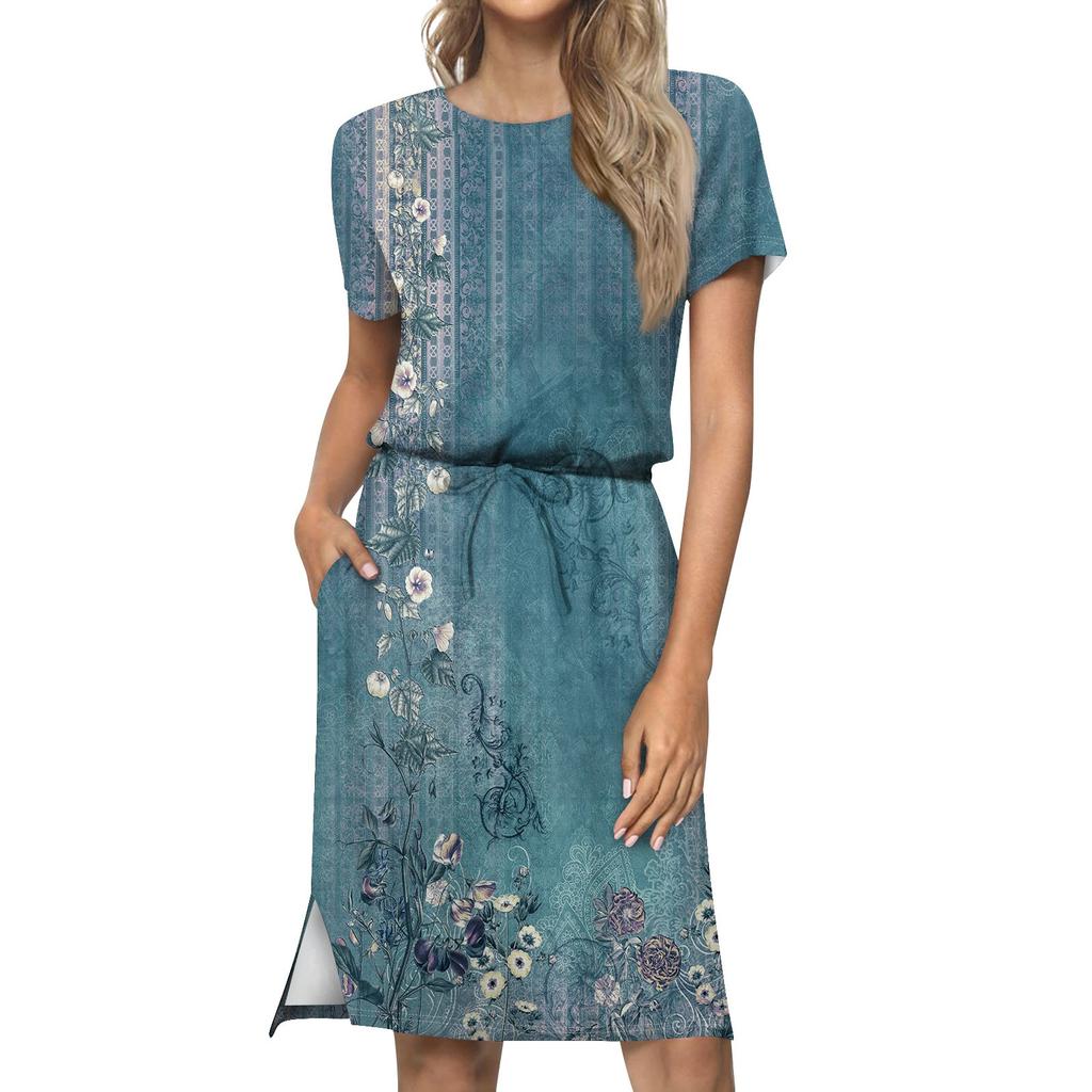 Женское модное свободное повседневное платье с короткими рукавами и карманами с принтом
