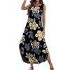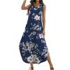 Женский 2024 летний повседневный свободный сарафан длинное платье с цветочным принтом без рукавов с v-образным вырезом и разрезом футболка платья макси