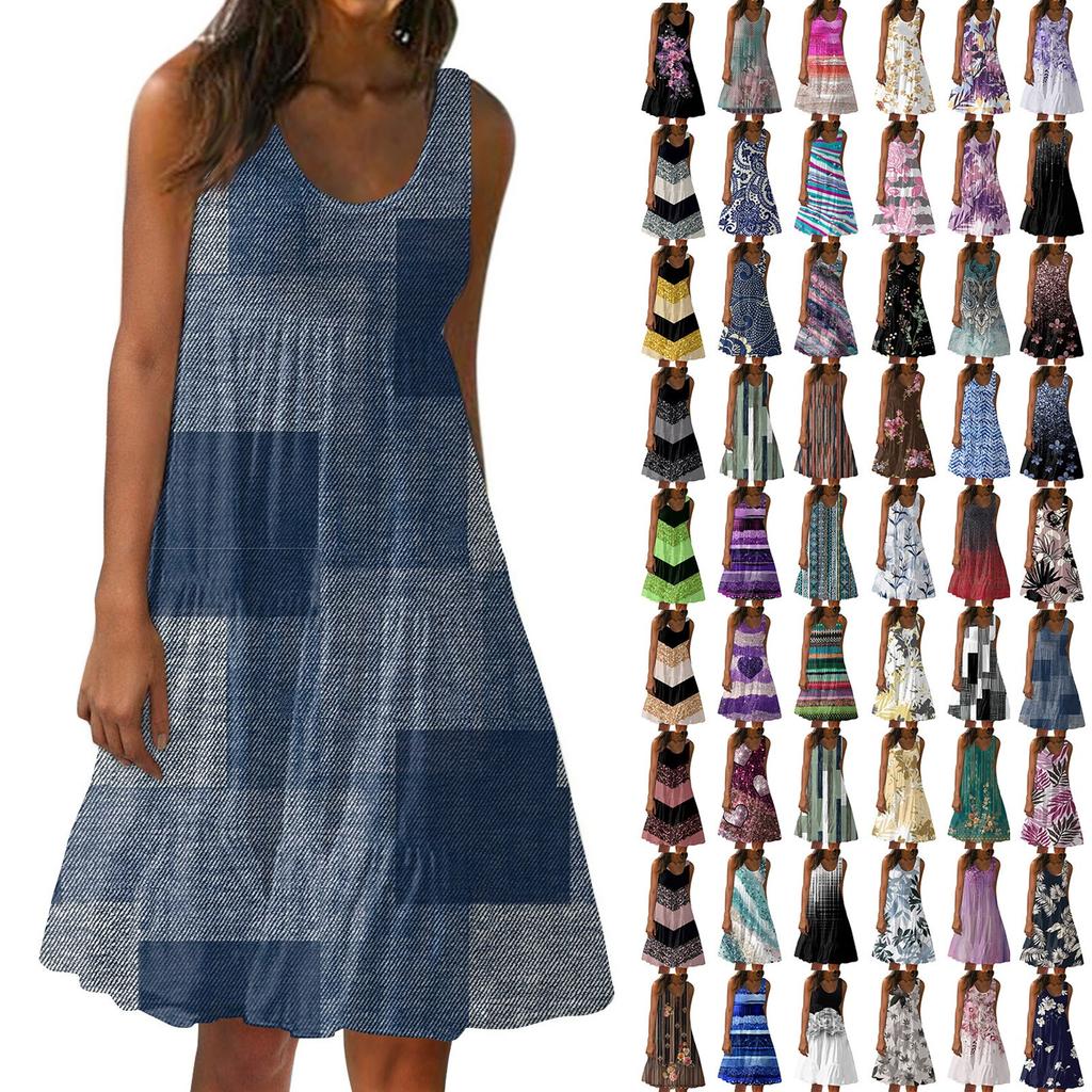 Женское платье, милая повседневная пляжная юбка без рукавов с принтом, сарафан — купить товар онлайн с бесплатной доставкой до всему миру!