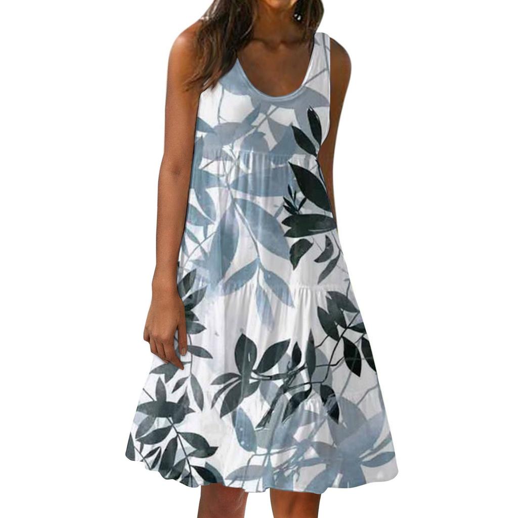 Женское платье, милая повседневная пляжная юбка без рукавов с принтом, сарафан