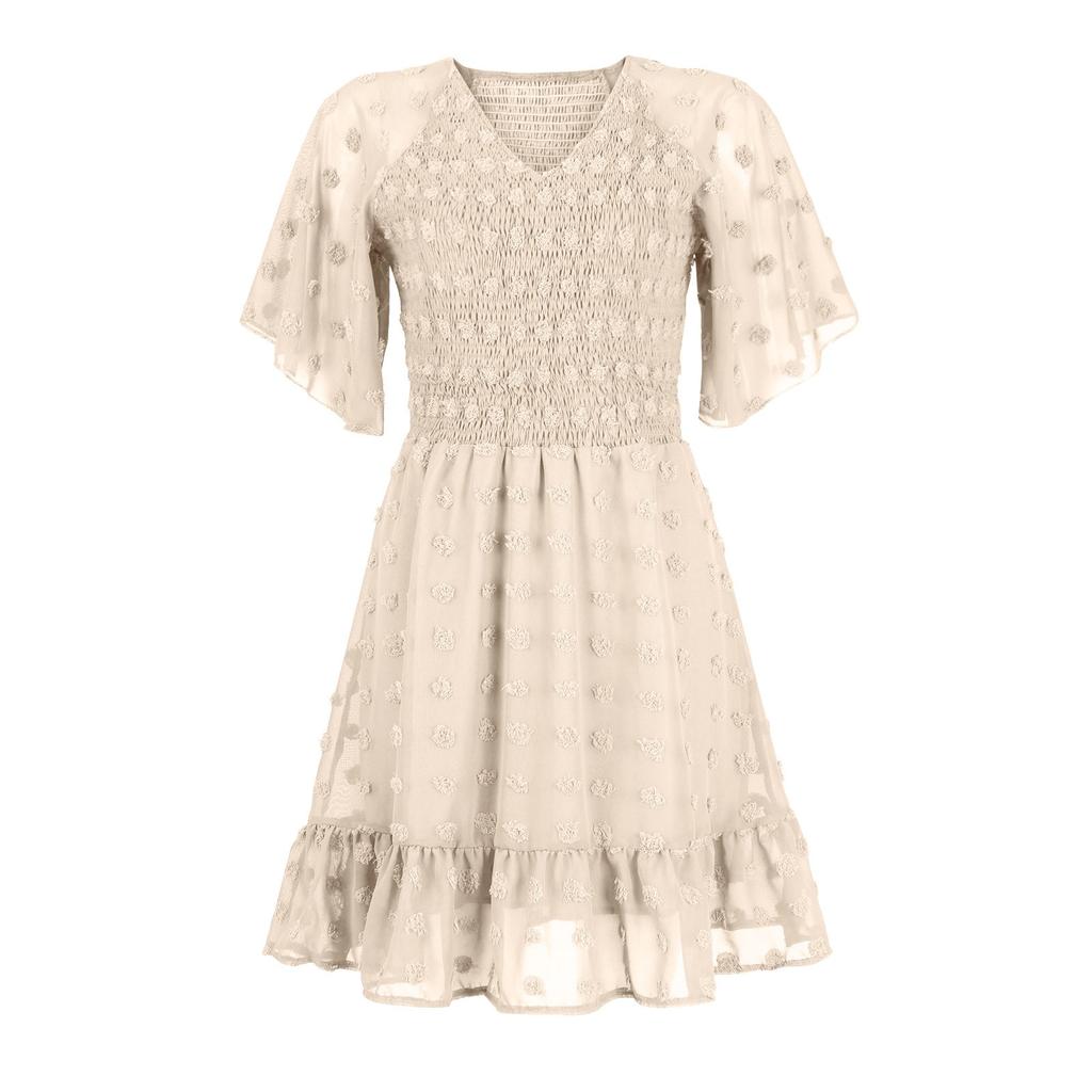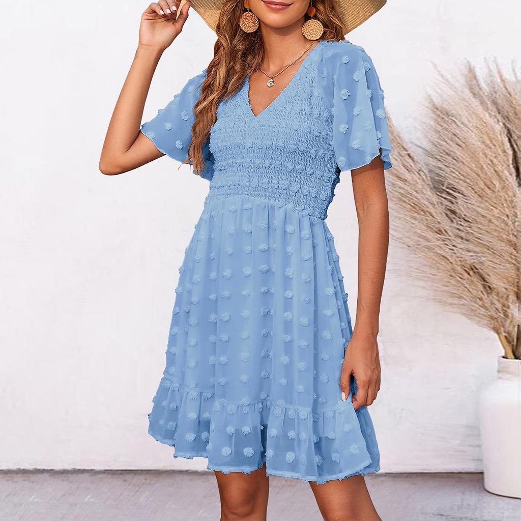 Женское повседневное платье с v-образным вырезом и короткими рукавами, пляжные летние платья в горошек с струящейся оборкой и подолом