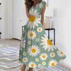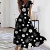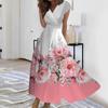 Женское длинное повседневное платье. Летнее платье с короткими рукавами и v-образным вырезом на талии с принтом.