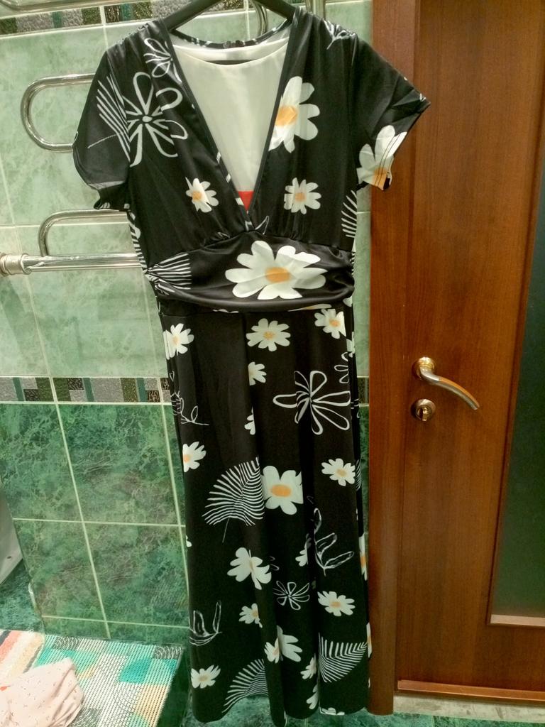 Спасибо Joom! 🖤🩶🤍 🖤 На первый взгляд платье неплохое, только что то в нем ни так... 🩶 Материал не понравился, синтетика и для летнего платья как- то толстоватая ткань 🤔 🤍 Ткань немного тянется и при натяжении начинает белесить 😐 🖤 Не мнётся, принт точно как на фото продавца, никакого постороннего запаха.⭐ 🩶 На спине имеется молния ⚡, швы ровные, аккуратные, но под грудью какой-то пузырь из ткани, выглядит ужасно!😑 🤍 В целом платье комфортное, но не струящееся легкое, а плотное держит форму. 💛 🖤 Длина платья в пол, соответствует размерной сетке. На рост 1,57 только с каблучком👠 🩶 При ходьбе подол платья шуршит... В общем подкачала ткань. Честно не ожидала получить такой материал. Считаю свою покупку очень неудачной... 😔 Не рекомендую.👎 P.s. спасибо огромное СП! ❤️🔥 Сразу вернули денежку💵 Люблю Joom!!! ❤️🔥🤗