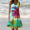 Гавайское платье для женщин, летние весенние плиссированные богемные платья, милые струящиеся пляжные платья без рукавов, прямая футболка, платья-майки, платья с круглым вырезом