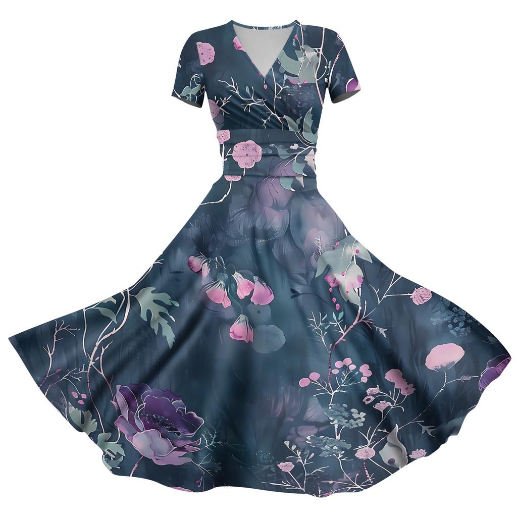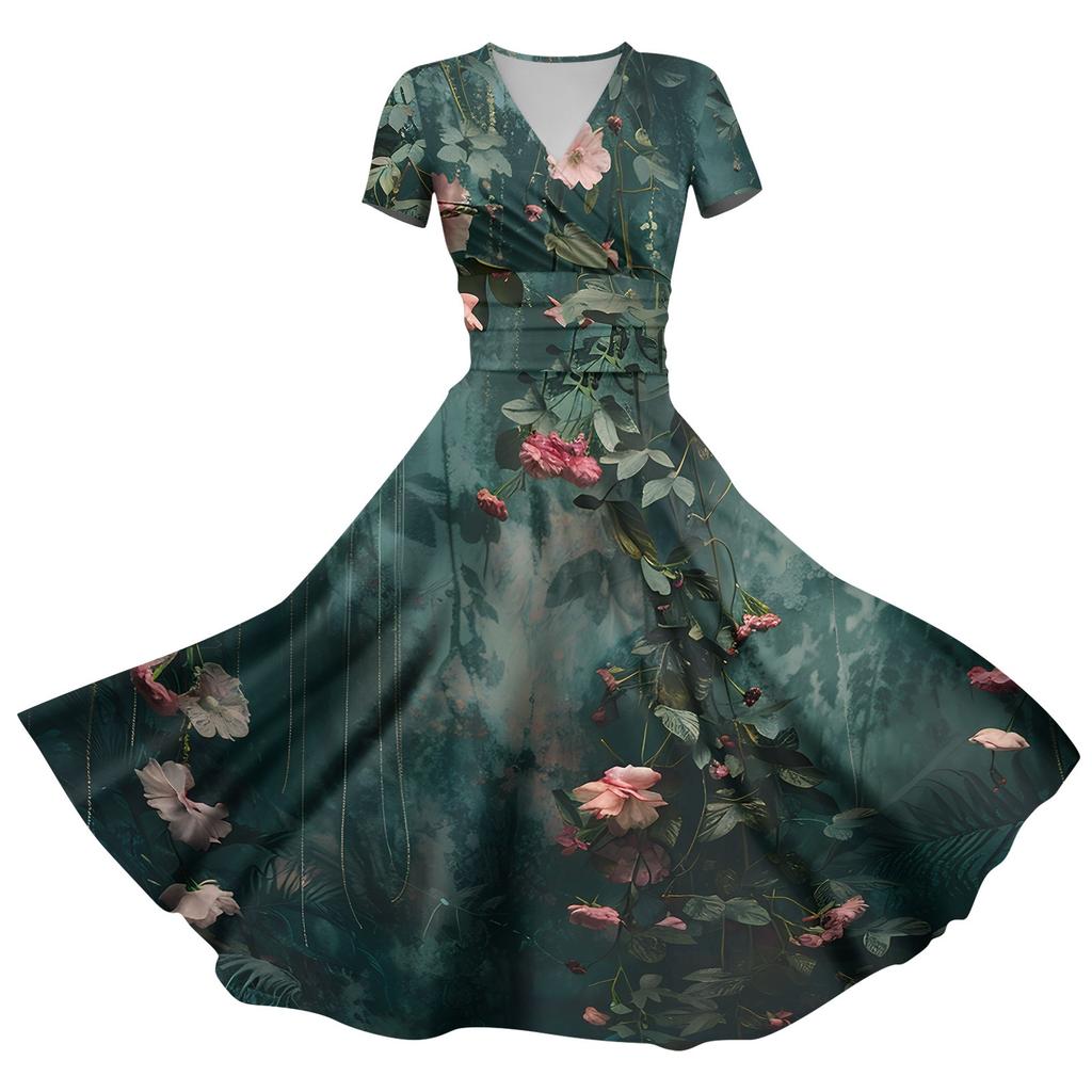 Женское платье принцессы, сексуальное плиссированное платье с коротким рукавом и v-образным вырезом на талии