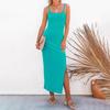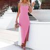 Женское модное однотонное платье с круглым вырезом и разрезом, сексуальное регулируемое платье на бретельках