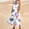Женские модные повседневные платья из хлопка и льна без рукавов с цветочным принтом и небольшими карманами