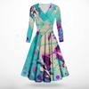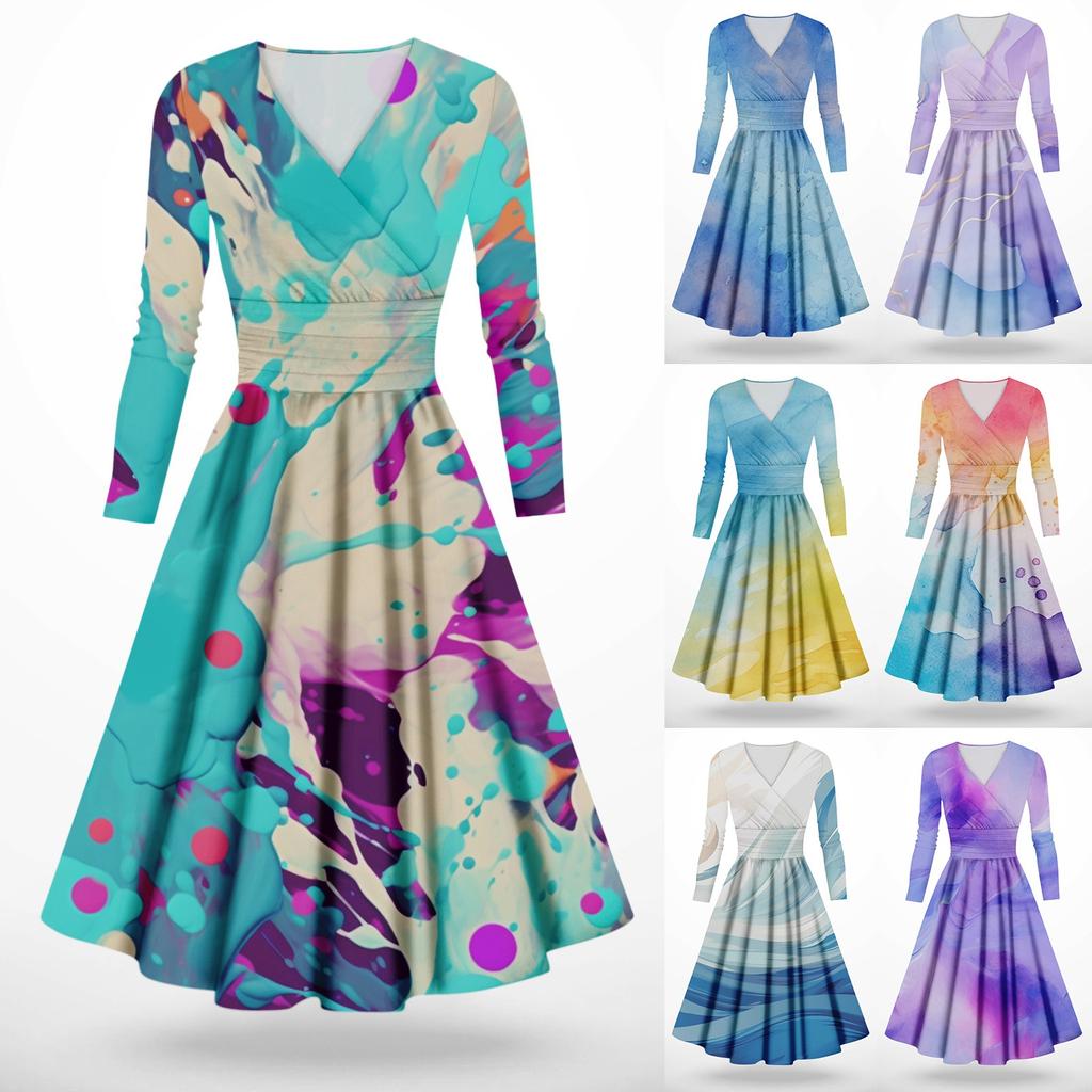 Женская мода повседневное платье с длинным рукавом и v-образным вырезом с принтом и карманами — купить товар онлайн с бесплатной доставкой по всему миру!