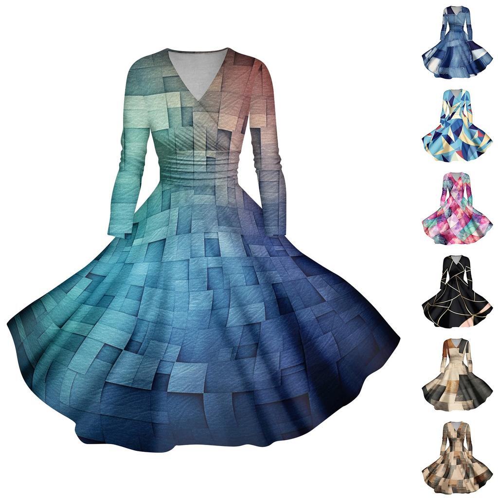 Женское повседневное и модное сексуальное платье с v-образным вырезом и длинными рукавами с градиентным принтом — купить товар онлайн с бесплатной доставкой по всему миру!
