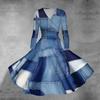 Женское повседневное и модное сексуальное платье с v-образным вырезом и длинными рукавами с градиентным принтом