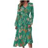 Женское осенне-зимнее повседневное модное длинное платье с v-образным вырезом и длинным рукавом с цветочным принтом