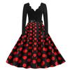 Женское платье в горошек с длинным рукавом и вырезом для вечеринки, повседневное платье с v-образным вырезом