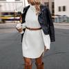 Женское свободное платье-свитер с круглым вырезом и длинными рукавами, зима, осень, зима