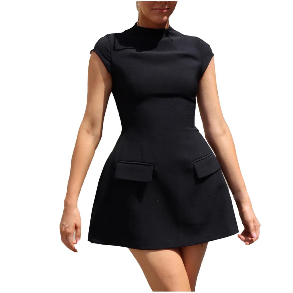 Новое модное платье с короткими рукавами и круглым вырезом без рукавов, однотонное тонкое платье с высокой талией