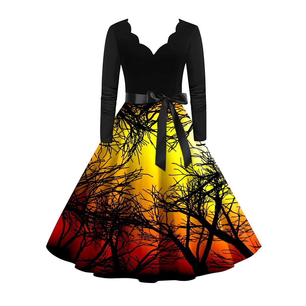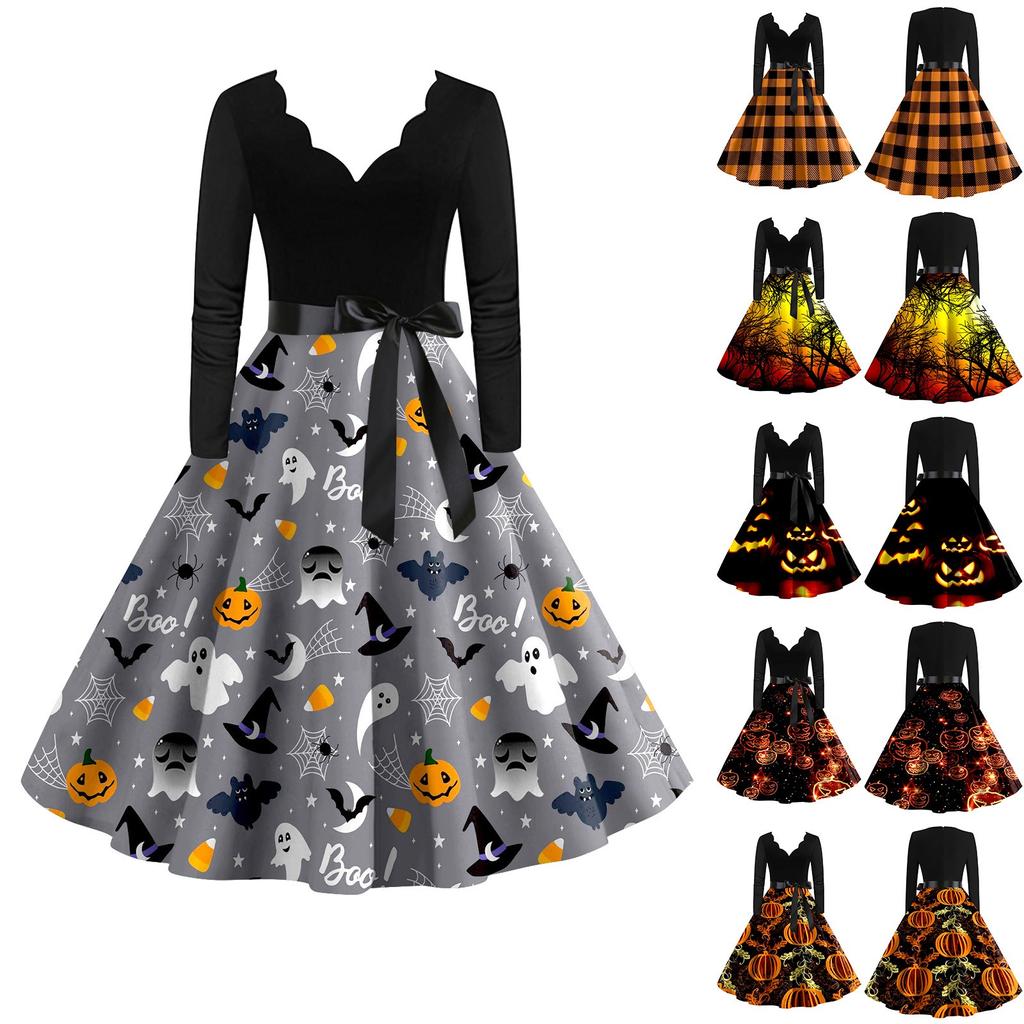 Женское винтажное платье с длинным рукавом для Хэллоуина и принтом 1950-х годов, вечернее платье для выпускного вечера для домохозяйки