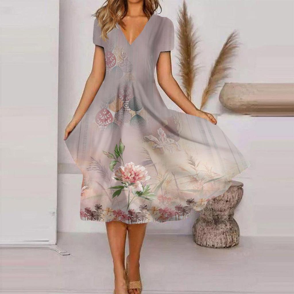 Женское модное и универсальное летнее темпераментное платье с v-образным вырезом и короткими рукавами с принтом — купить товар онлайн с бесплатной доставкой по всему миру!