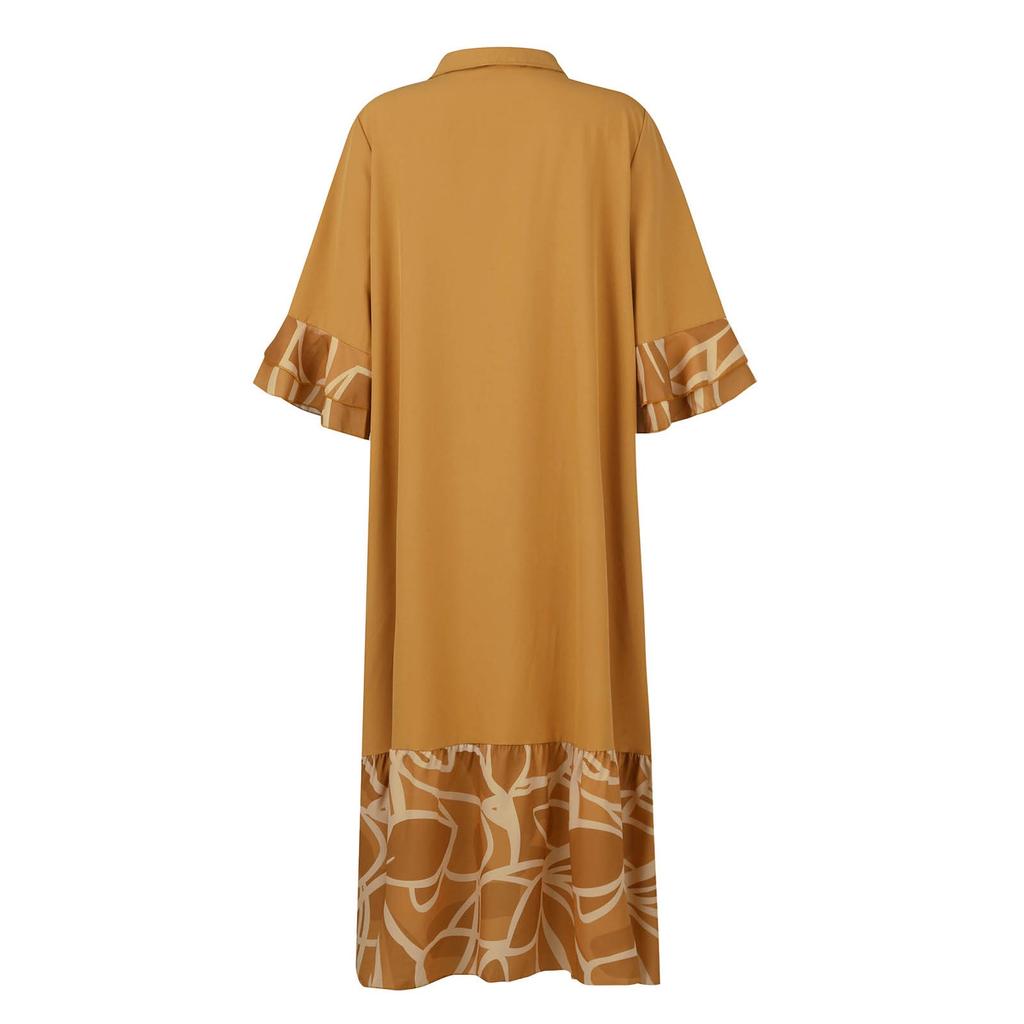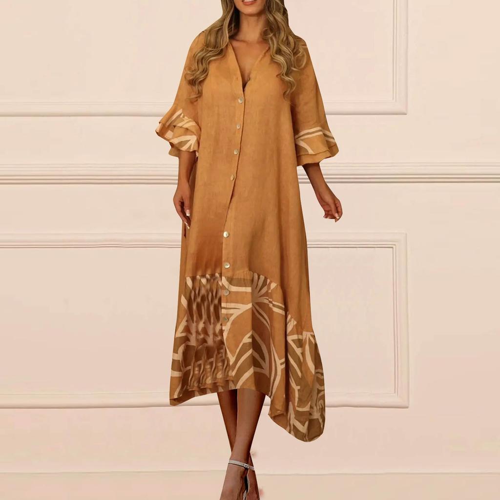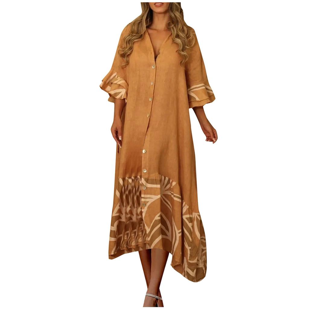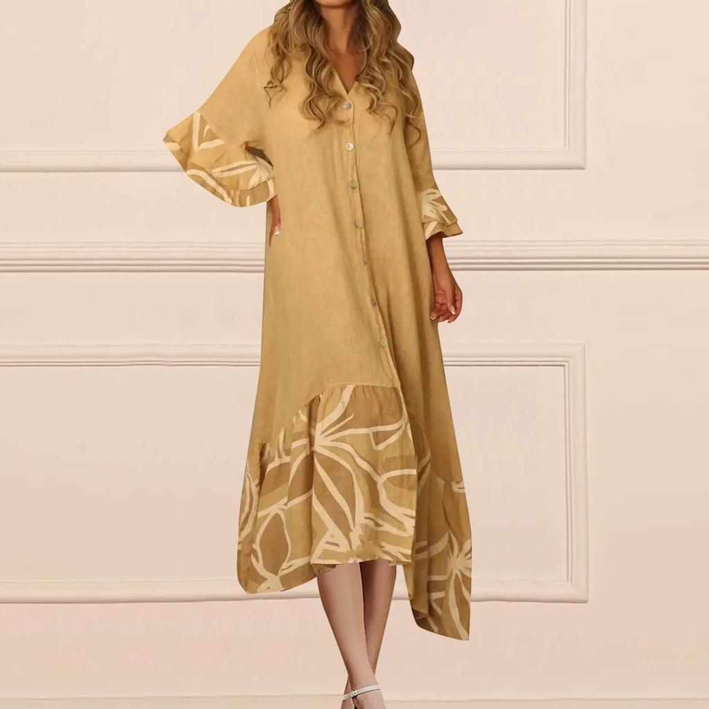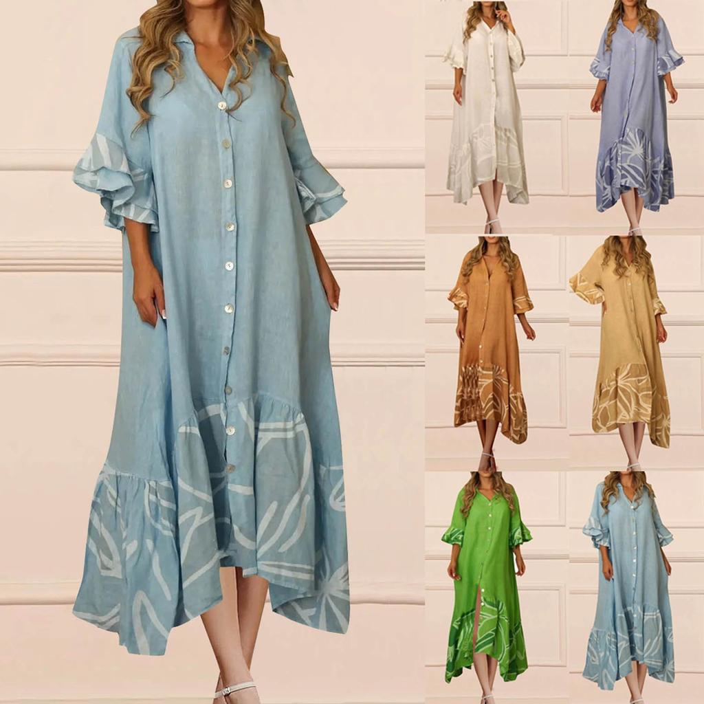 Женские повседневные летние платья с рукавами 3/4, весеннее лоскутное платье макси с цветочным принтом в стиле бохо и рюшами
