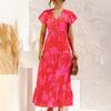 Женское повседневное модное сексуальное платье с v-образным вырезом и пуговицами, короткими рукавами и высокой талией, на шнуровке, в богемном стиле, большие качели