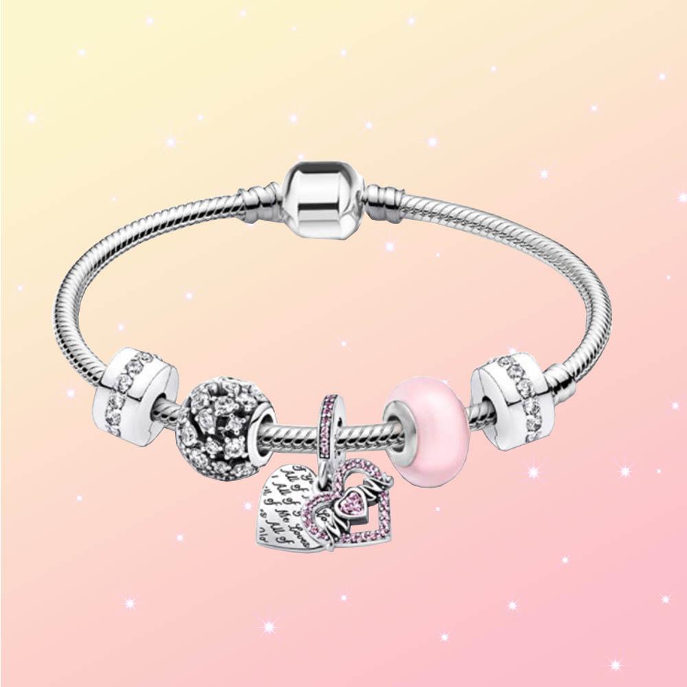 День матери S925 Серебряный "МАМА" Сердце Розовый Мотаться Шарм Стеклянная Бусина Змеиная Кость Браслет-Цепочка Для Женщин Ювелирные Изделия На День Рождения Подарки