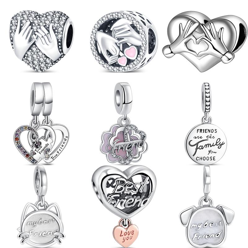 S925 Стерлингового Серебра Настоящий Лучший Друг Обещает Сердце Кулон Любовь Бусины Подходит S925 Оригинальные Подвески Браслет DIY Женские Ювелирные Изделия