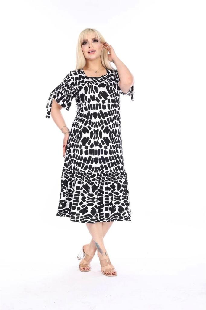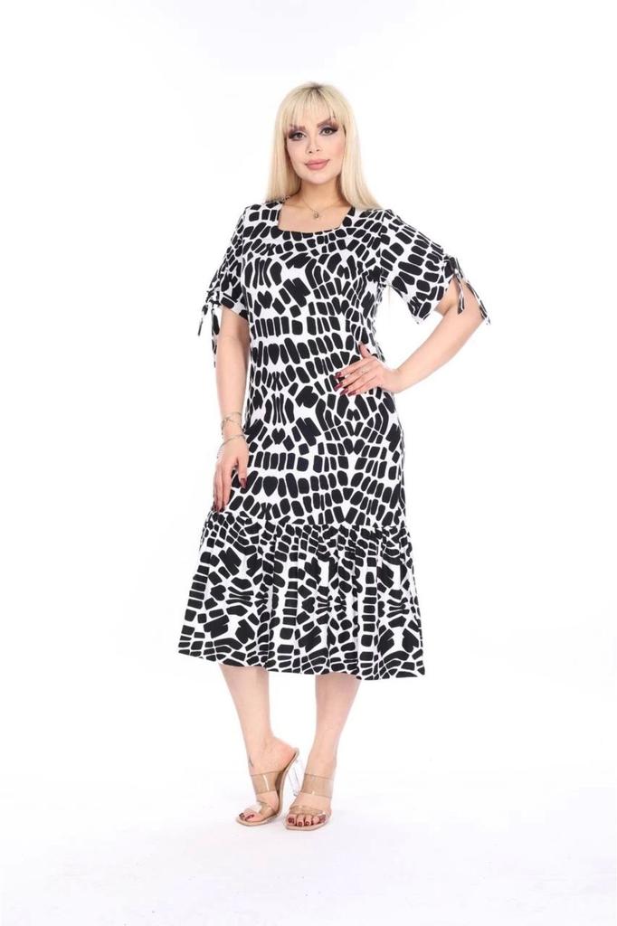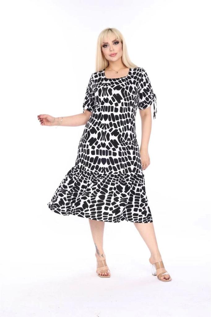 Женское платье миди из вискозной ткани с квадратным вырезом больших размеров, гибкое платье миди с короткими рукавами и подробными деталями