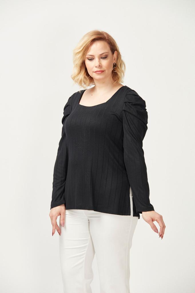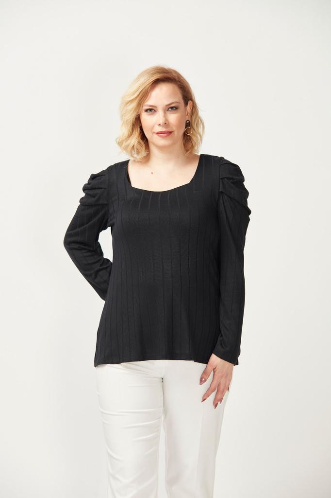 Трикотажная блузка больших размеров с воздушными рукавами, черная