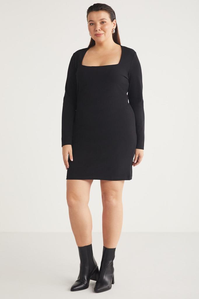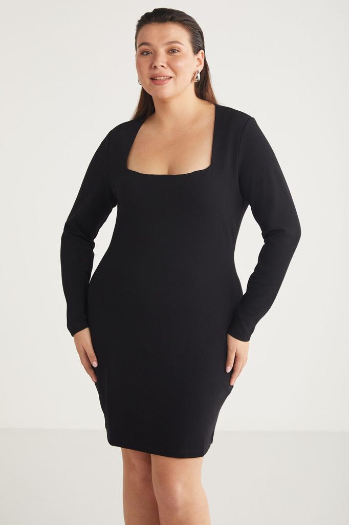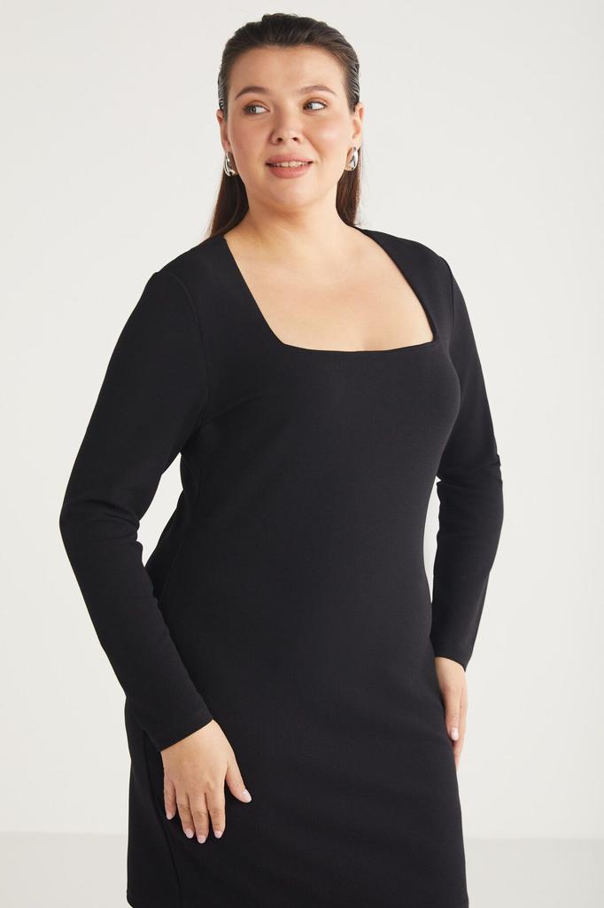 Bessıebb Women's Square Collar Mini Black Plus Size Dress That Covers The Body Completely.