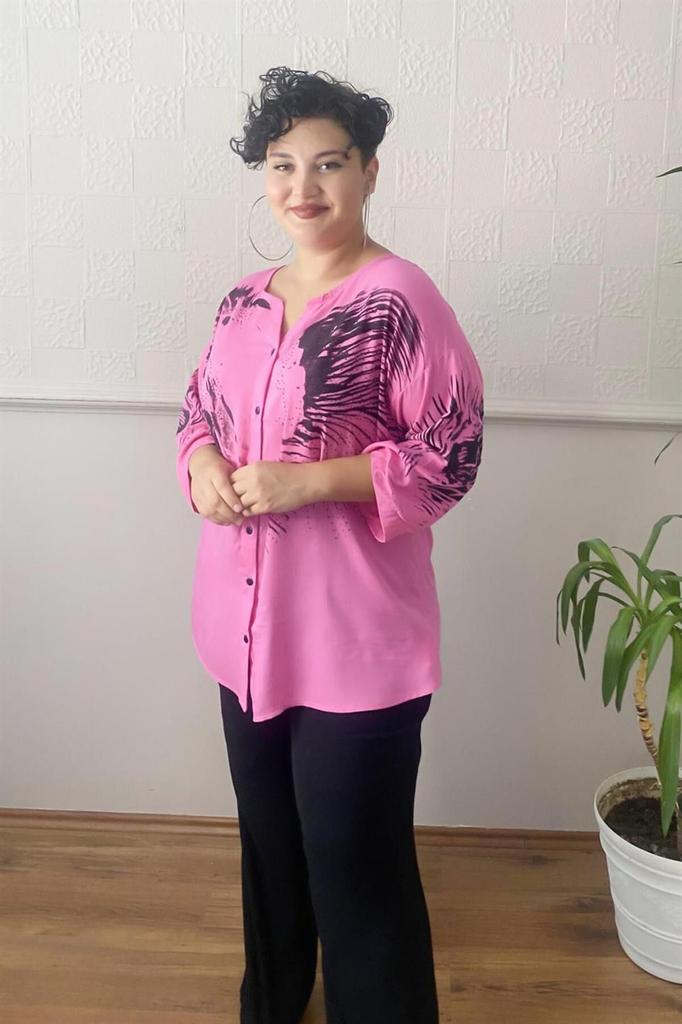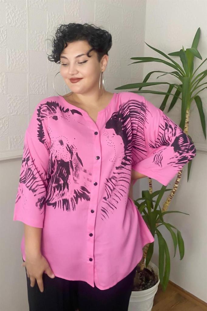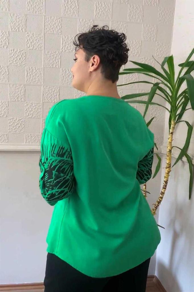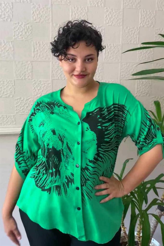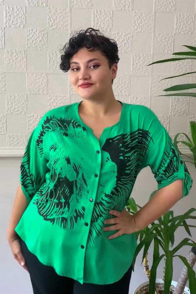 Блуза-рубашка больших размеров с камнями и принтом, зеленая