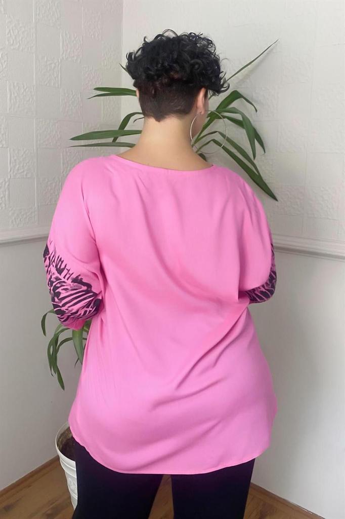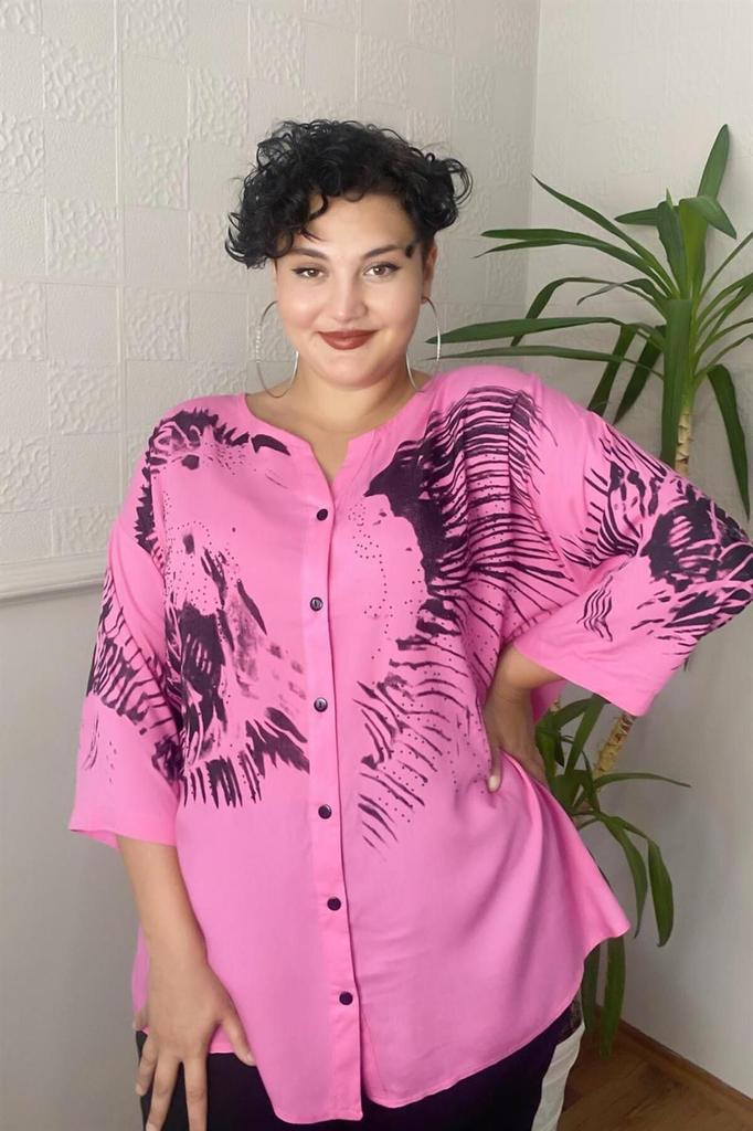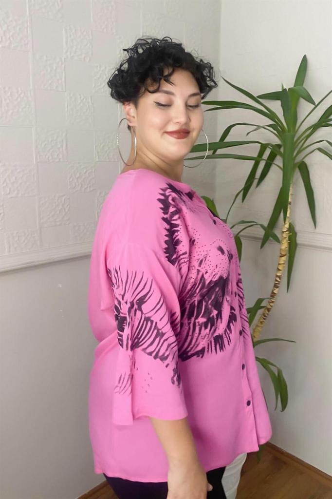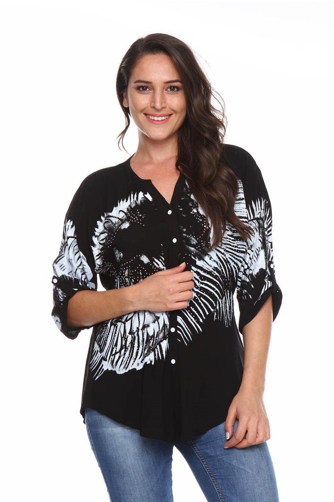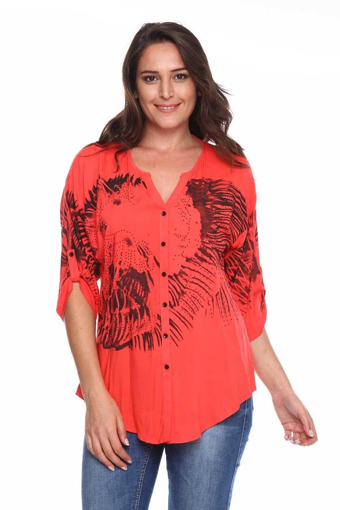 Блуза-рубашка больших размеров с камнями и принтом, зеленая