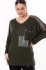 Женская блузка большого размера с v-образным вырезом, карманами и рукавами, сетчатая деталь, каменная вышивка, длинный рукав, удобная и струящаяся гибкая блузка