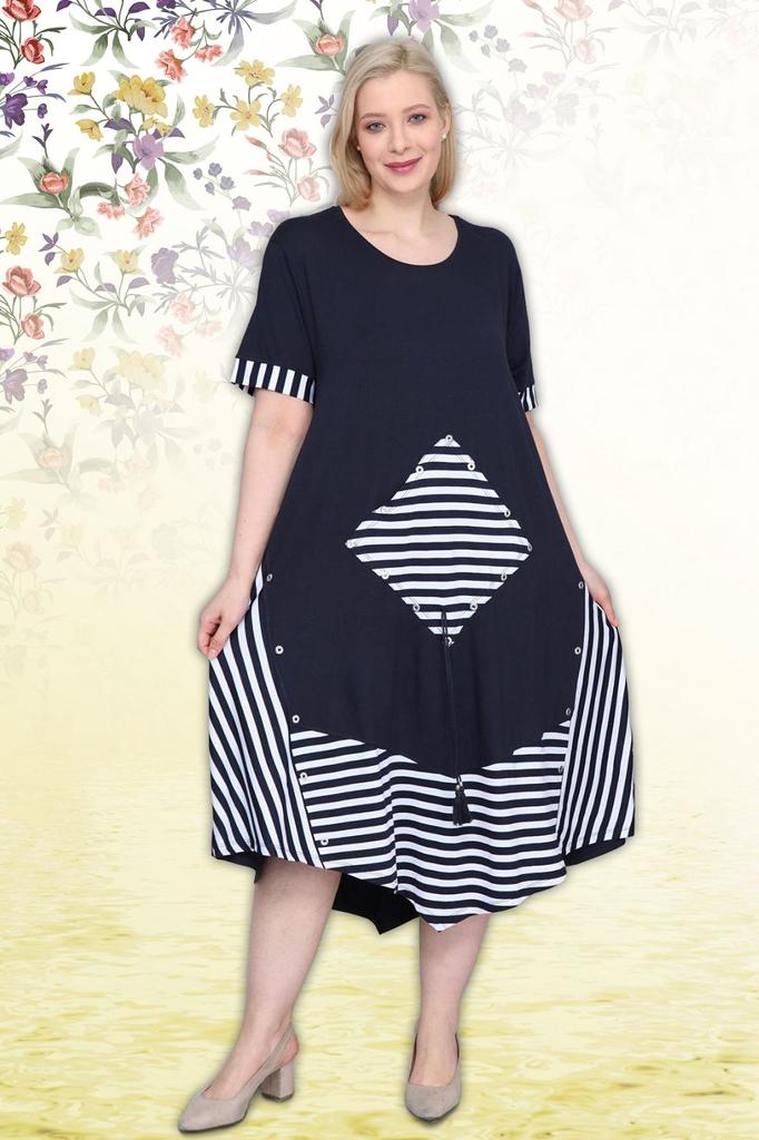 Женское платье большого размера Платье асимметричного кроя с детальной линией темно-синего цвета