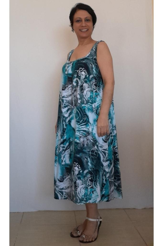 Синее платье из чесаного хлопка и вискозы с узором, присборенными спереди и сзади