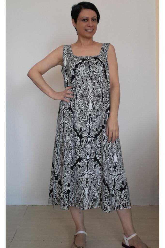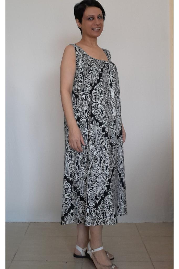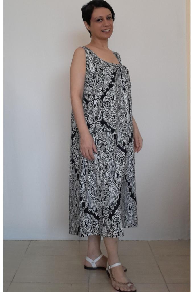 Черно-белое платье на бретелях из чесаного хлопка с узором, со сборками спереди и сзади
