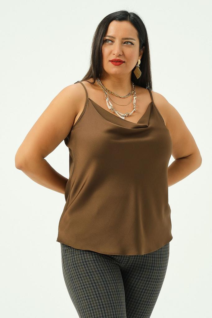 Атласная нижняя рубашка с кружевным воротником и регулируемыми бретелями.