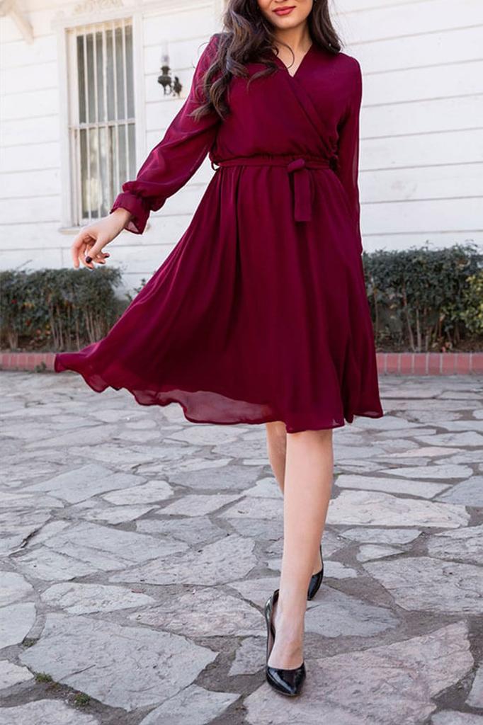 Бордово-красное двубортное шифоновое платье больших размеров