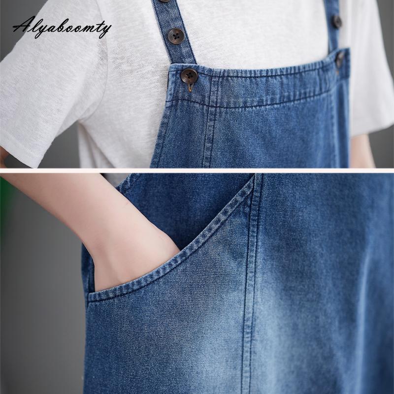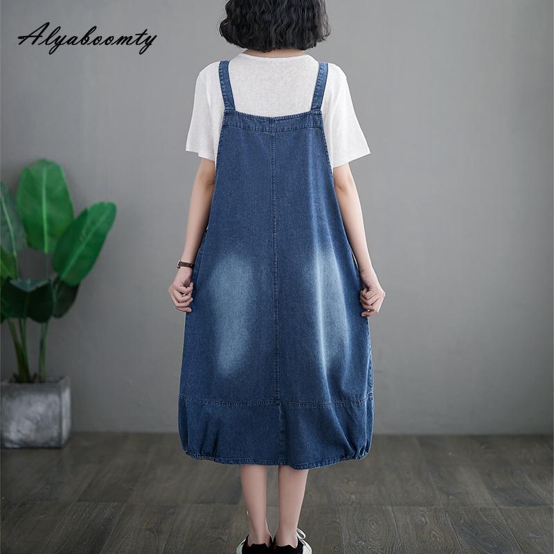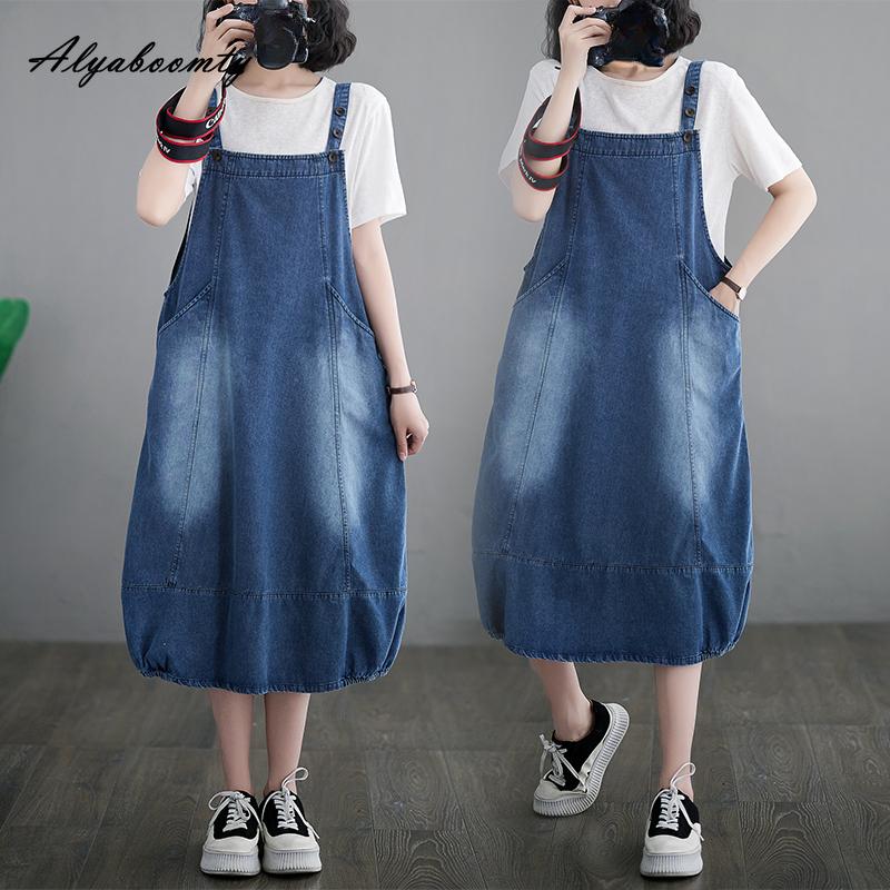 Женский джинсовый мешковатый сарафан больших размеров в корейском стиле, подтяжки, повседневное свободное платье на бретелях, винтажное платье без рукавов из стираного хлопка больших размеров