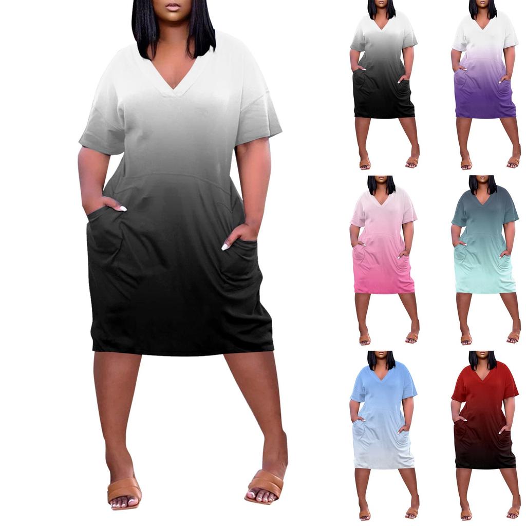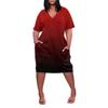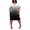 Лето плюс размер V-образным вырезом с коротким рукавом и карманом до колена с градиентным принтом повседневное платье для женщин
