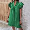 Женское модное повседневное сплошное платье-пуловер с v-образным вырезом и рукавами с рюшами