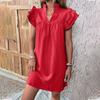 Женское модное повседневное сплошное платье-пуловер с v-образным вырезом и рукавами с рюшами — купить товар онлайн с бесплатной доставкой по всему миру!