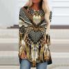 Женская мода Повседневный топ с длинным рукавом в стиле ретро в стиле бохо с длинным рукавом и этническим принтом