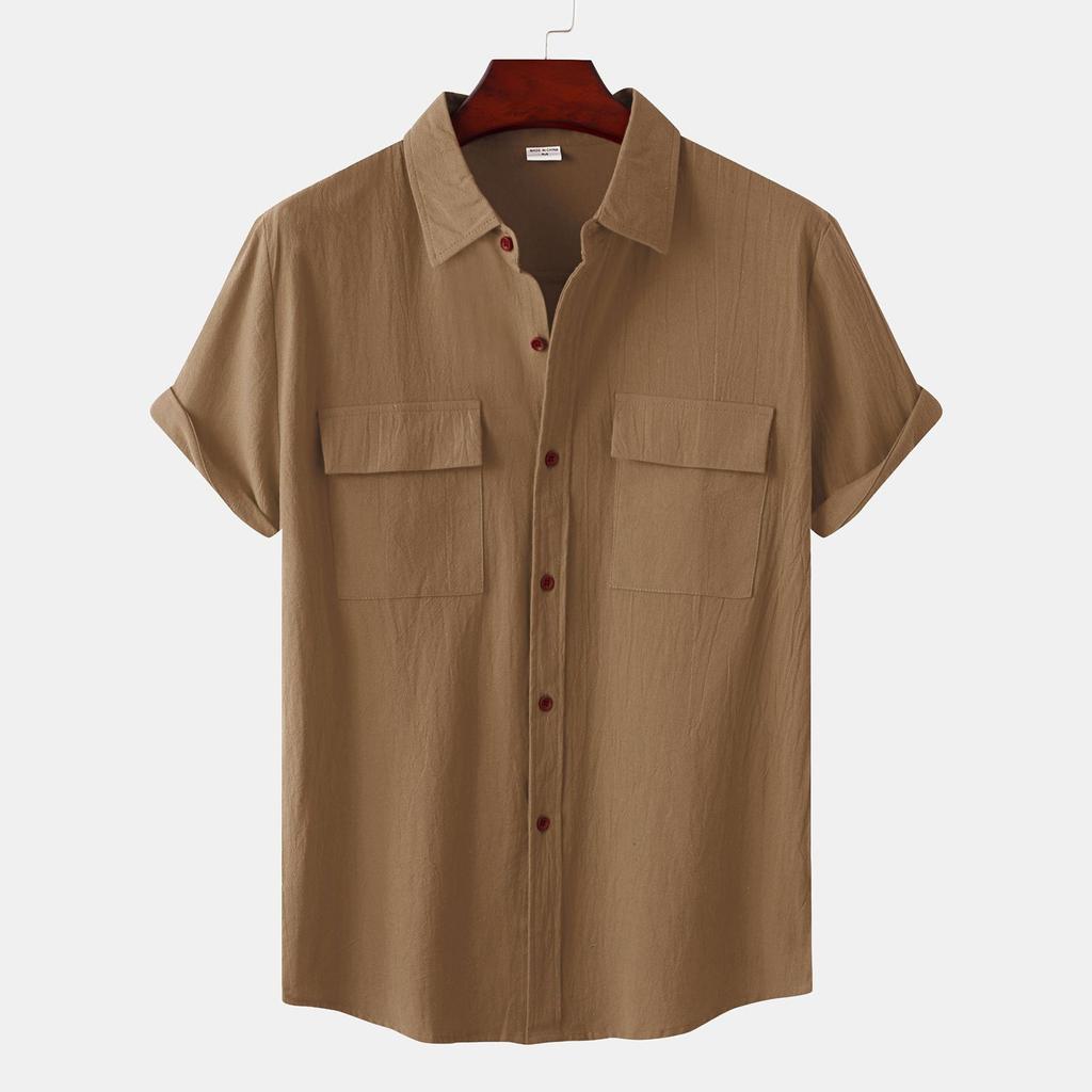 Летняя повседневная свободная хлопково-льняная рубашка, льняные однотонные топы с половиной рукавов для мужчин и женщин