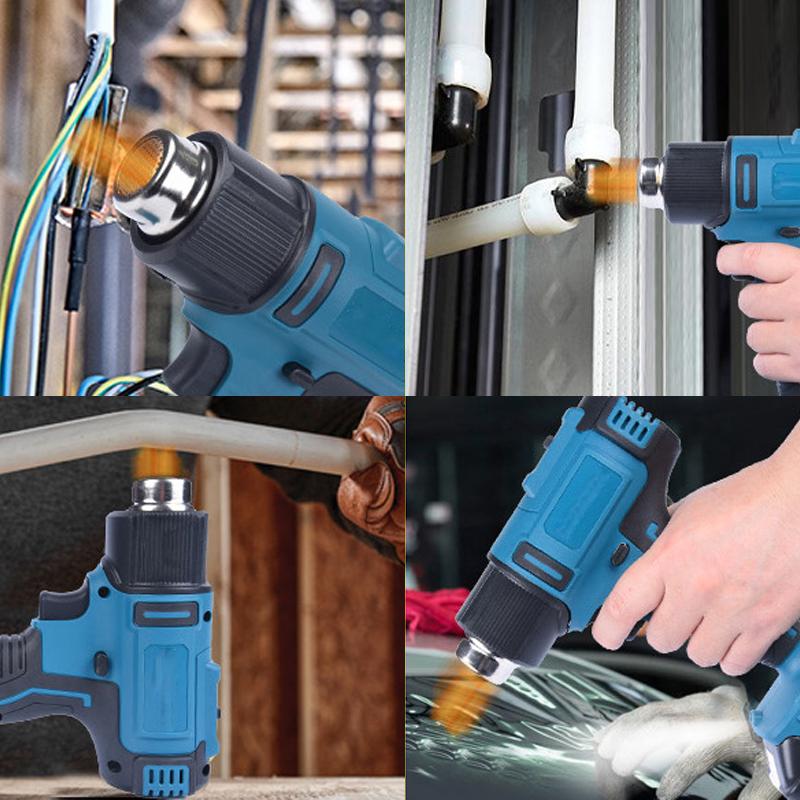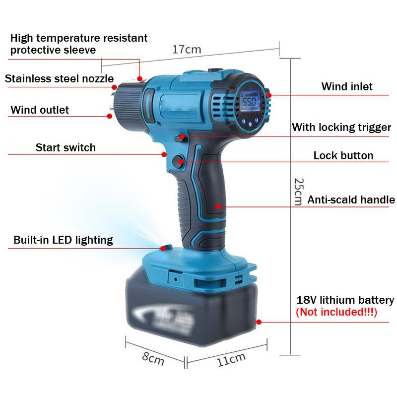 Беспроводная тепловая пушка 2500 Вт, ручная электрическая тепловая пушка, электроинструменты с регулировкой температуры 0–550 ℃ и насадка 4/7, совместимая с батареей Makita 18 В
