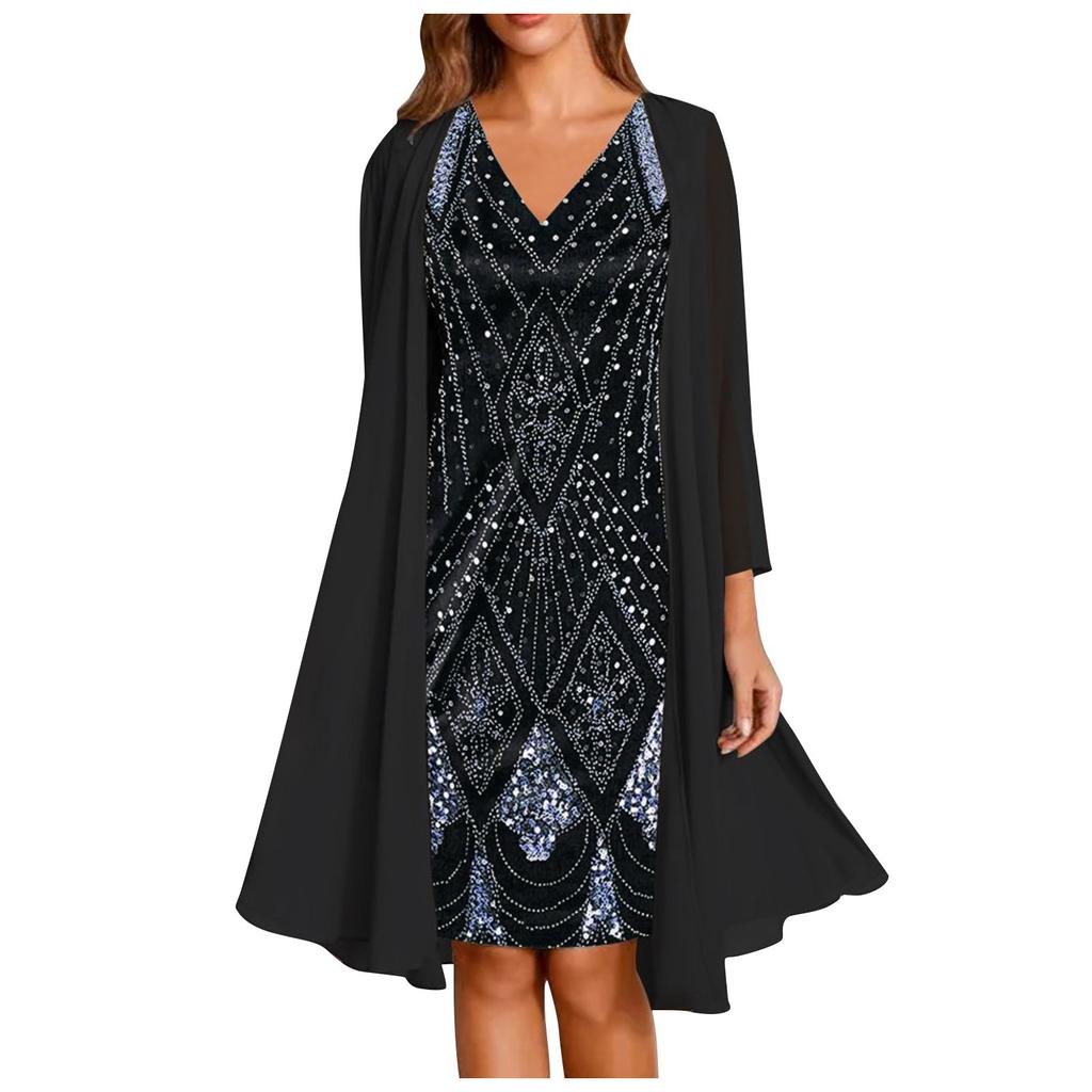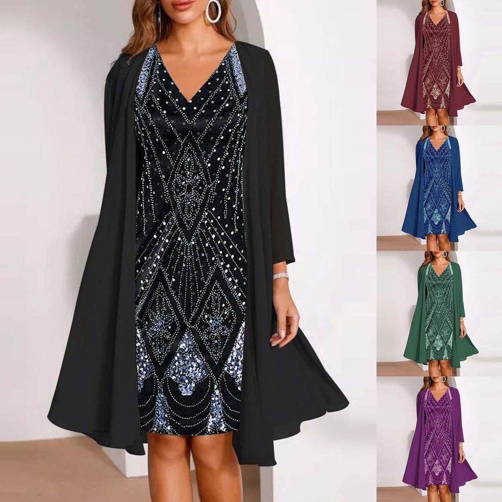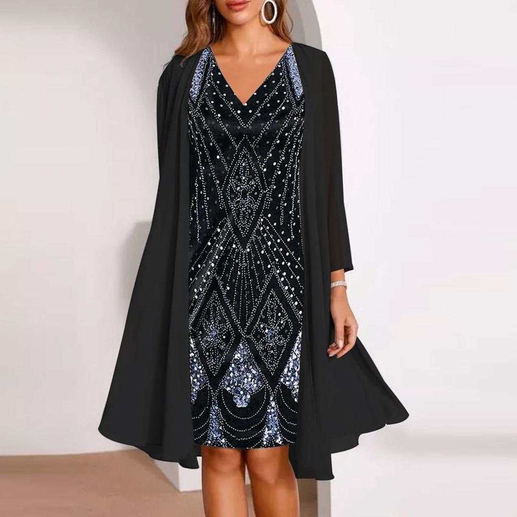 Женское модное элегантное шифоновое платье без рукавов с v-образным вырезом и принтом, платье из двух частей