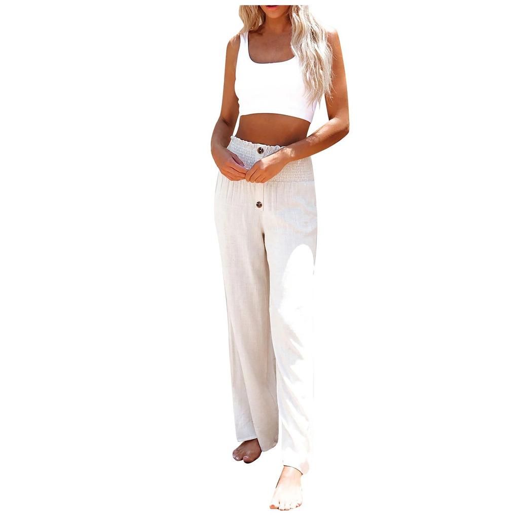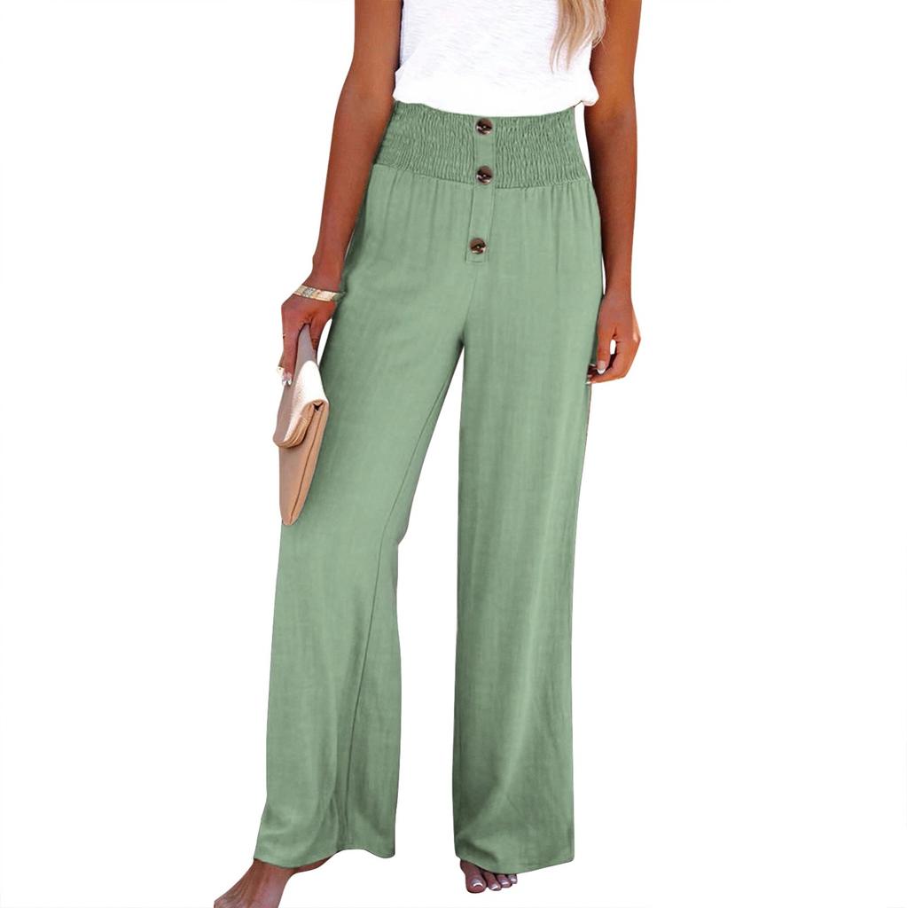 Женские однотонные свободные длинные широкие брюки с высокой талией, эластичные повседневные брюки с отделкой на пуговицах