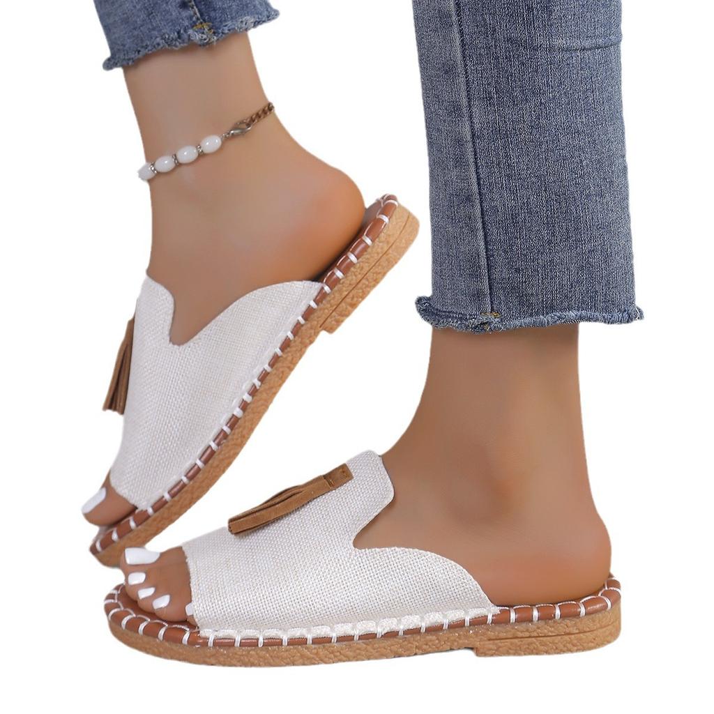 Весенние модные летние дышащие женские шлепанцы с декором кисточками, повседневная обувь без шнуровки на плоской подошве, легкие мягкие сандалии-шлепанцы