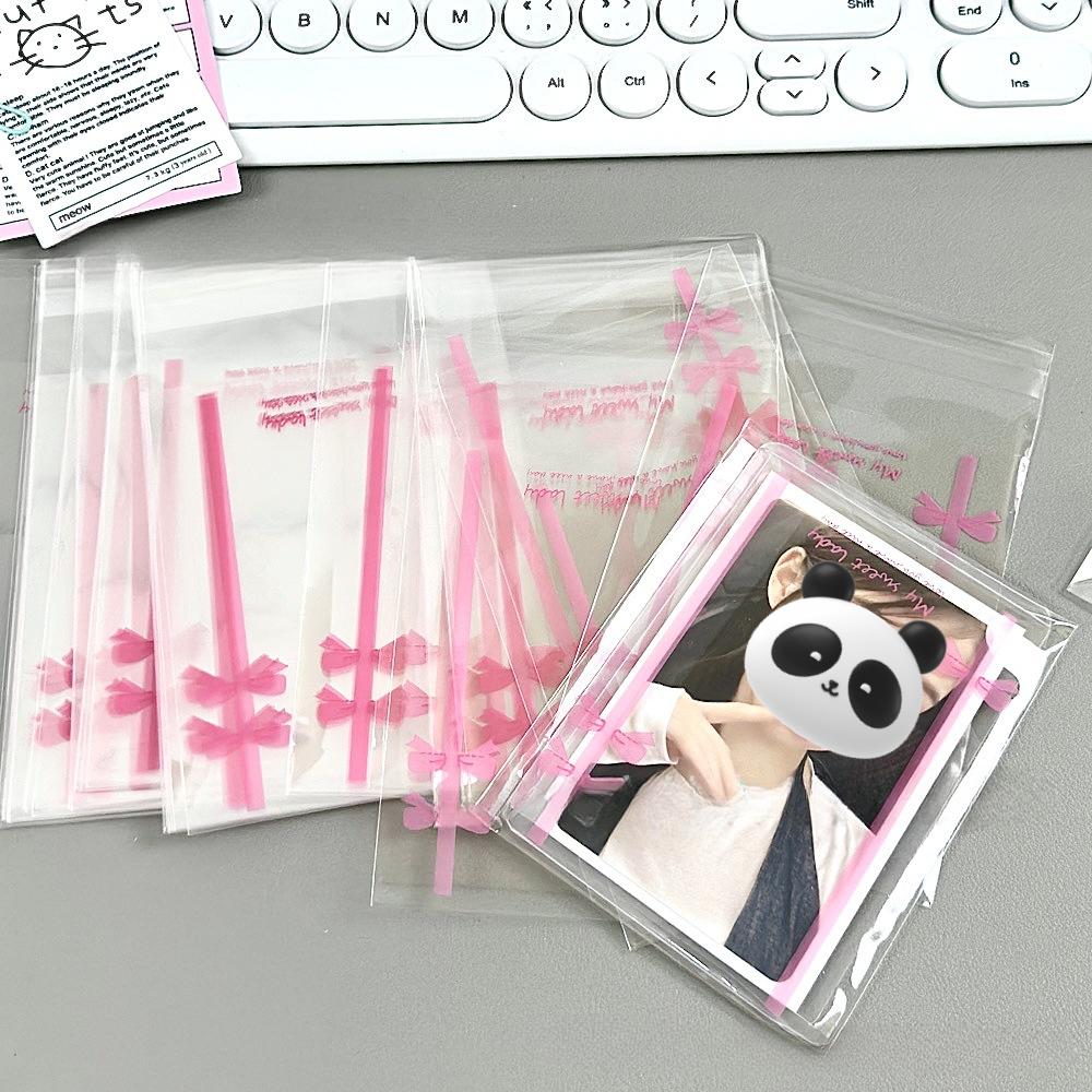 20 шт., самоклеящаяся сумка для карт с милым розовым, черным бантом, Kpop Star, 3 дюйма, фотокарточка, Kawaii, продающая карта, карман для упаковки «сделай сам»