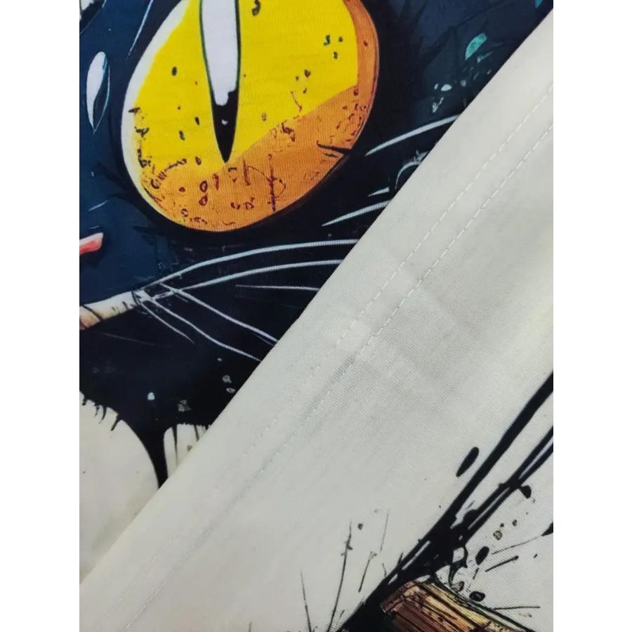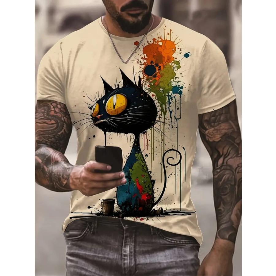 Мужская привлекательная футболка с граффити в виде кота — легкий и дышащий топ с круглым вырезом с короткими рукавами — модная летняя одежда, идеально подходит для отдыха и подарков